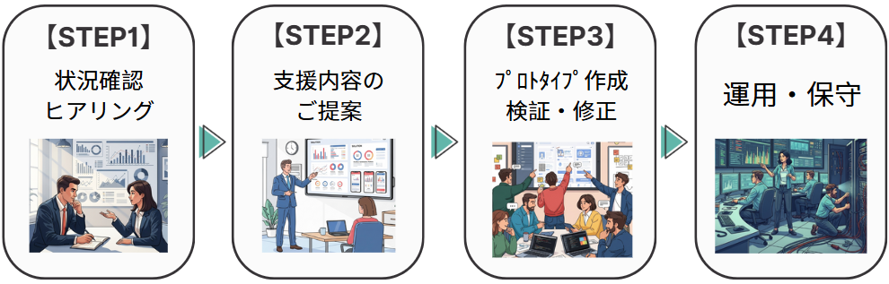 業務内容に応じて、以下の流れでご支援させていただきます。